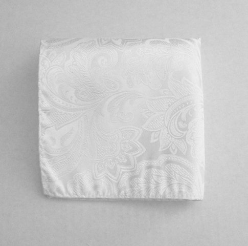 100% Silk Woven White Paisley Pocket Square Feature